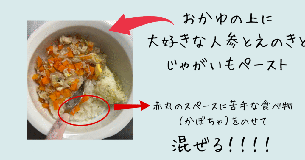 比較的食べてくれるものと苦手なものとで混ぜ込んでみることに☆